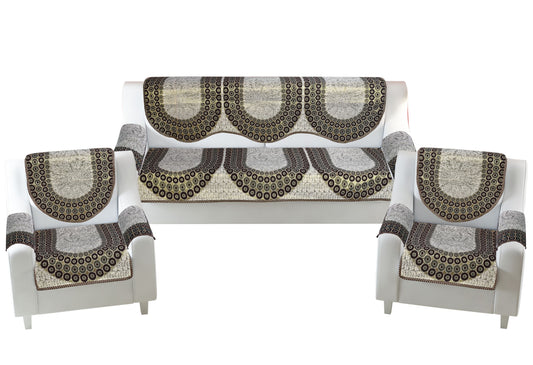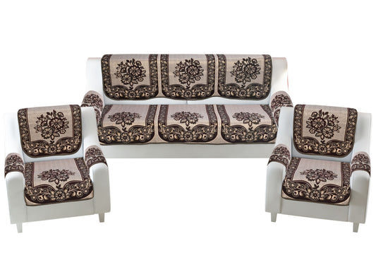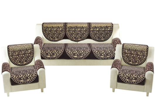 Bigger Fish Poly Cotton Fabric 5 Seater Sofa Cover with 6 Pcs Arms Cover - 16 Pieces (Coffee)