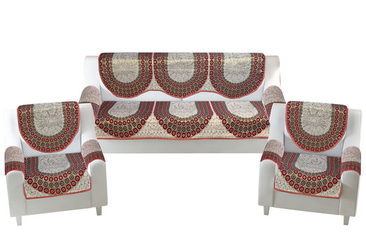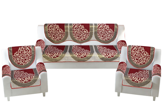 Bigger Fish Poly Cotton Fabric 5 Seater Sofa Cover with 6 Pcs Arms Cover - 16 Pieces (Maroon)