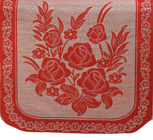 Bigger Fish Poly Cotton Net Fabric Floral 7 Seater 23x28 Inch Sofa Cover with 6 Pcs Arms Cover - 20 Pieces (Red)