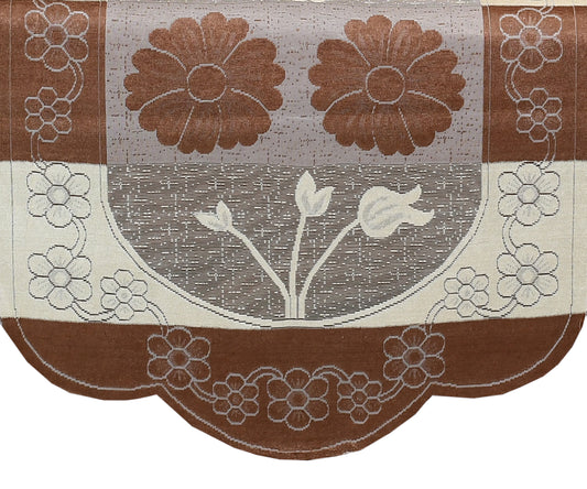 Bigger Fish Poly Cotton Net Fabric Floral 7 Seater 23x28 Inch Sofa Cover with 6 Pcs Arms Cover - 20 Pieces (Brown)