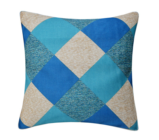 Bigger Fish Set of 5 Digital Print Polycotton Cushion Covers - Blue & Cream (16x16 Inches)