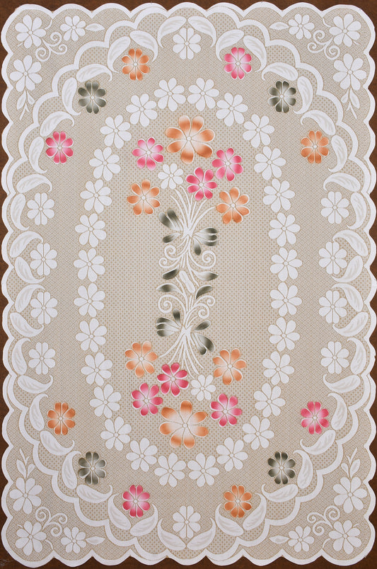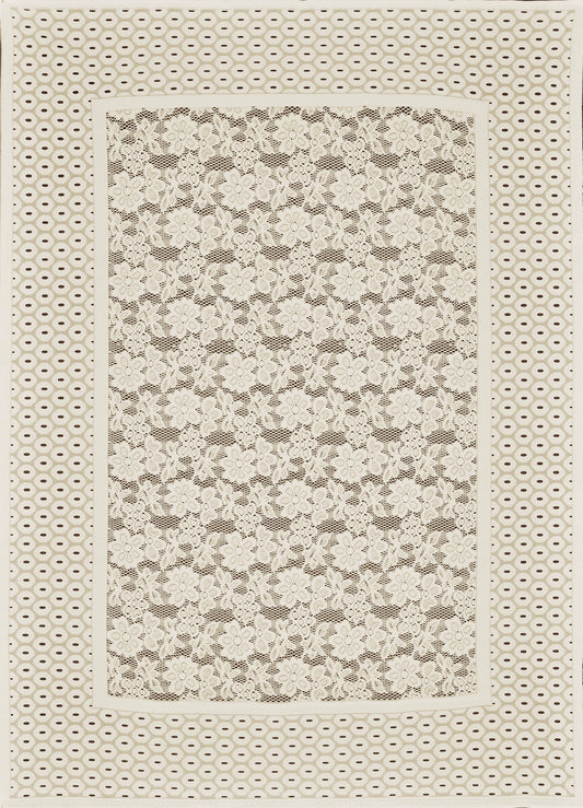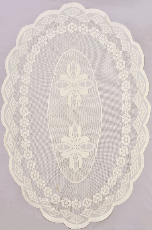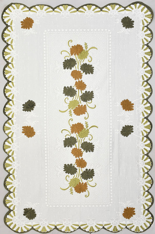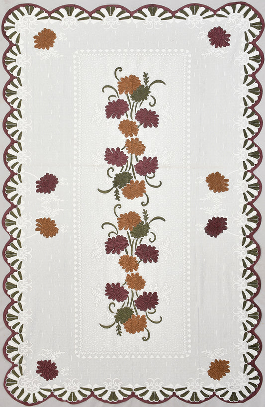 Bigger Fish Poly Cotton , Decorative Hand Made Floral Design Dining Table Cover for 6-8 Seater (60 X 90 Inches) (Cream)