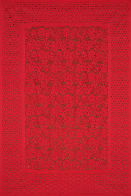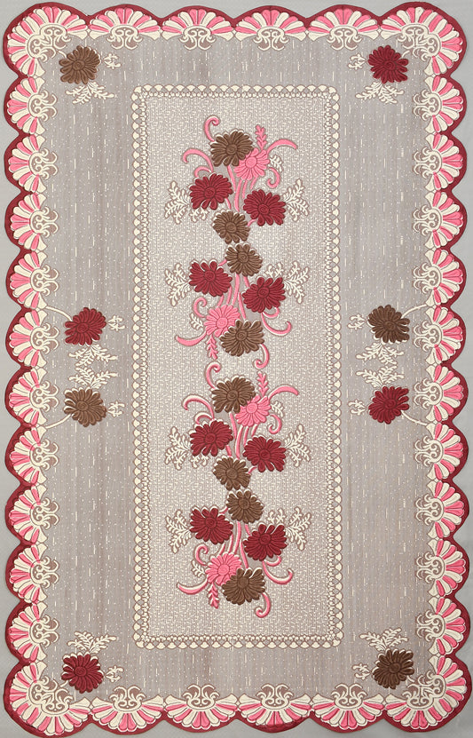 Bigger Fish Poly Cotton , Decorative Hand Made Floral Pattern Dining Table Cover for 6-8 Seater (60 X 90 Inches) (Maroon)