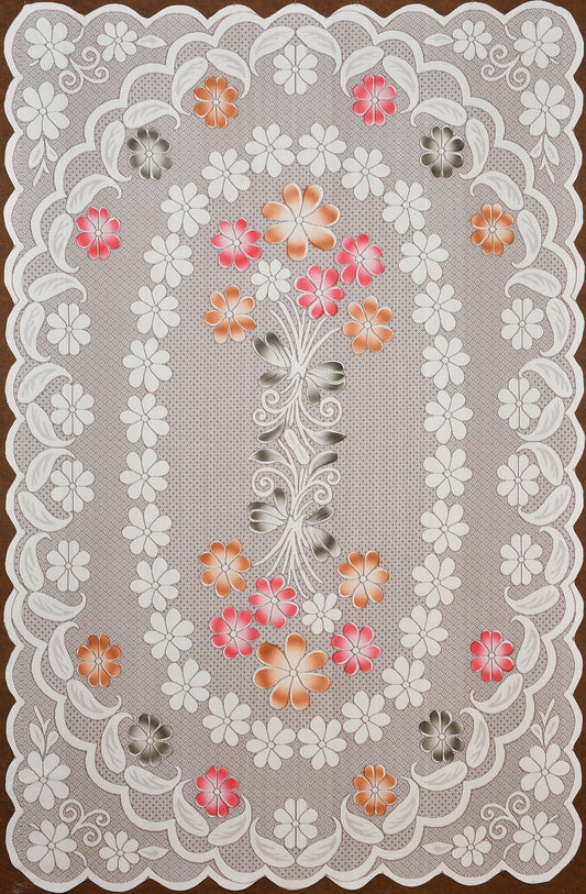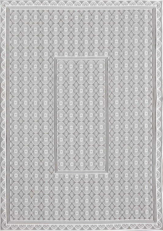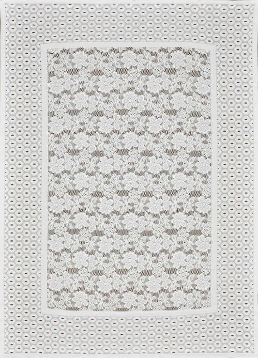 Bigger Fish Poly Cotton , Decorative Hand Made Floral Design Dining Table Cover for 6-8 Seater (60 X 90 Inches) (White)