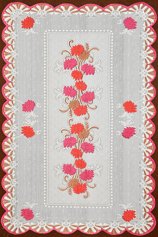 Bigger Fish Poly Cotton , Decorative Hand Made Floral Design Dining Table Cover for 6-8 Seater (60 X 90 Inches) (Pink)