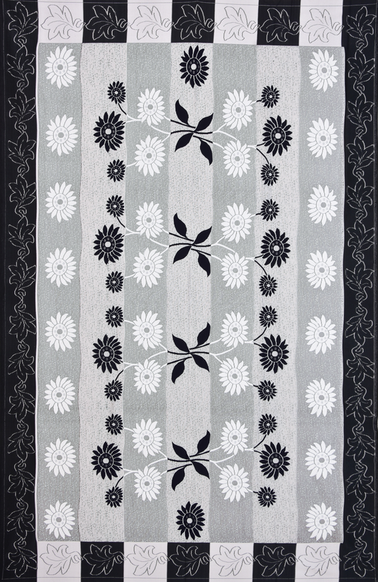 Bigger Fish Poly Cotton , Decorative Hand Made Floral Design Dining Table Cover for 6-8 Seater (60 X 90 Inches) (Black)