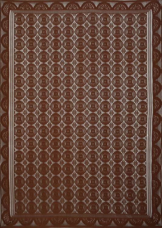 Bigger Fish Poly Cotton , Decorative Hand Made Floral Design Dining Table Cover for 6-8 Seater (60 X 90 Inches) (Brown)