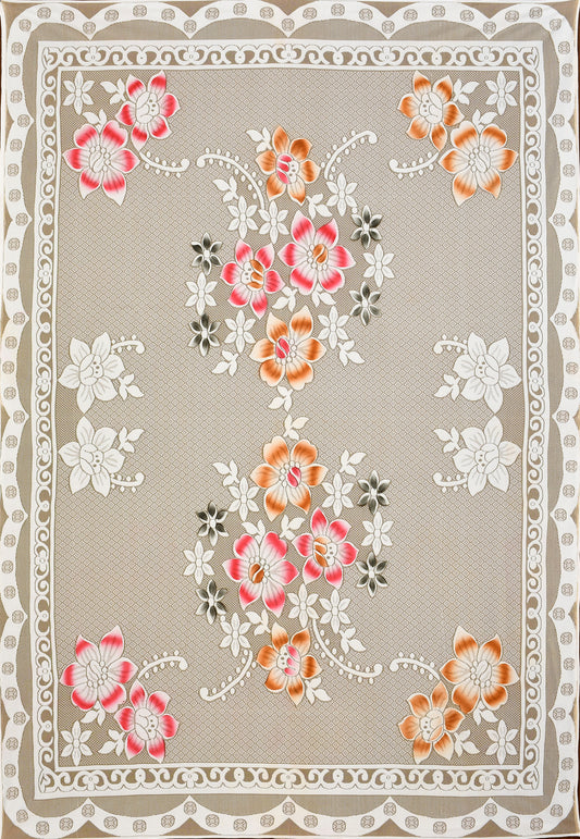 Bigger Fish Poly Cotton , Decorative Hand Made Floral Pattern Dining Table Cover for 6-8 Seater (60 X 90 Inches) (Brown)