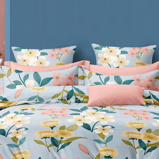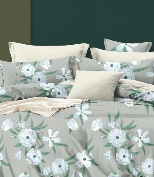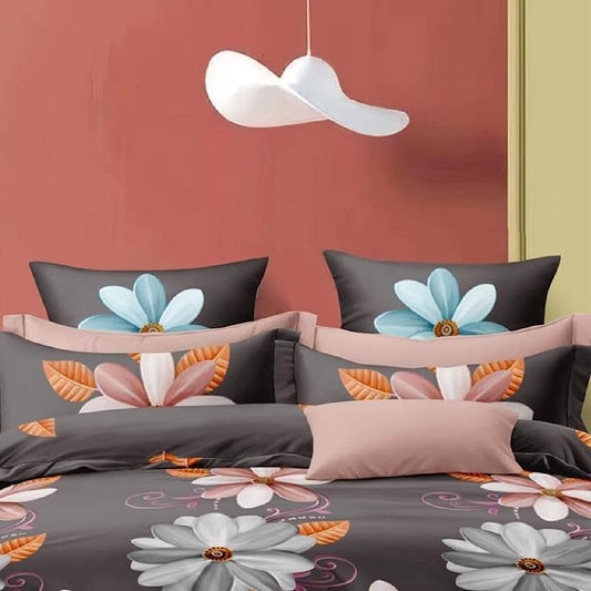Bigger Fish Comfy 240 TC Polycotton Double Floral Flat Bedsheet 90x100 Inch with 2 Pillow Cover (Grey)
