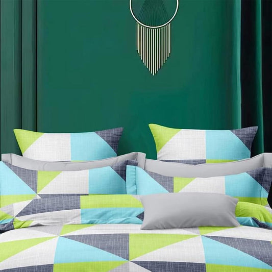 Bigger Fish Comfy 240 TC Polycotton Double Abstract Flat Bedsheet 90x100 Inch with 2 Pillow Cover ( Green)