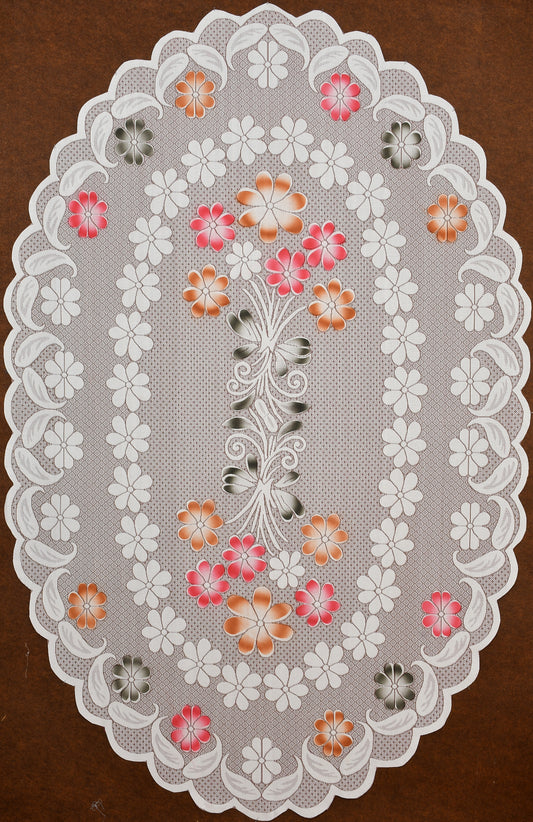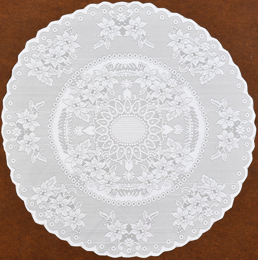 Bigger Fish 6 Seater Floral Design Poly Cotton Round Table Cover (60x60 Inch) (White)