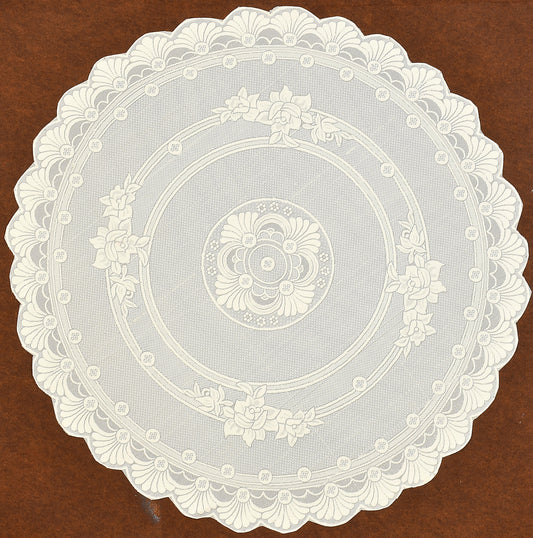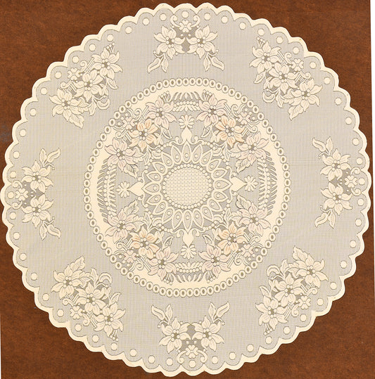 Bigger Fish 60 Inch Round Table Cover Poly Cotton Floral Elegant Design 6 Seater Tablecloth/Cream