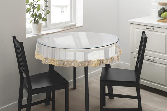 Bigger Fish PVC 60 Inch Clear Golden Lace Round Table Cover Transparent 4 Seater Tablecloth/Golden Lace Medium Table Cover