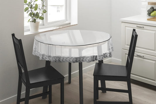 Bigger Fish PVC 60 Inch Clear Silver Lace Round Table Cover Transparent 4 Seater Tablecloth/Silver Lace Medium Table Cover