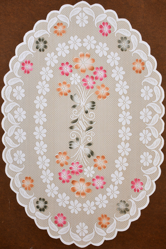 Bigger Fish 6 Seater Floral Design Poly Cotton Round Table Cover (60x60 Inch) (Cream)