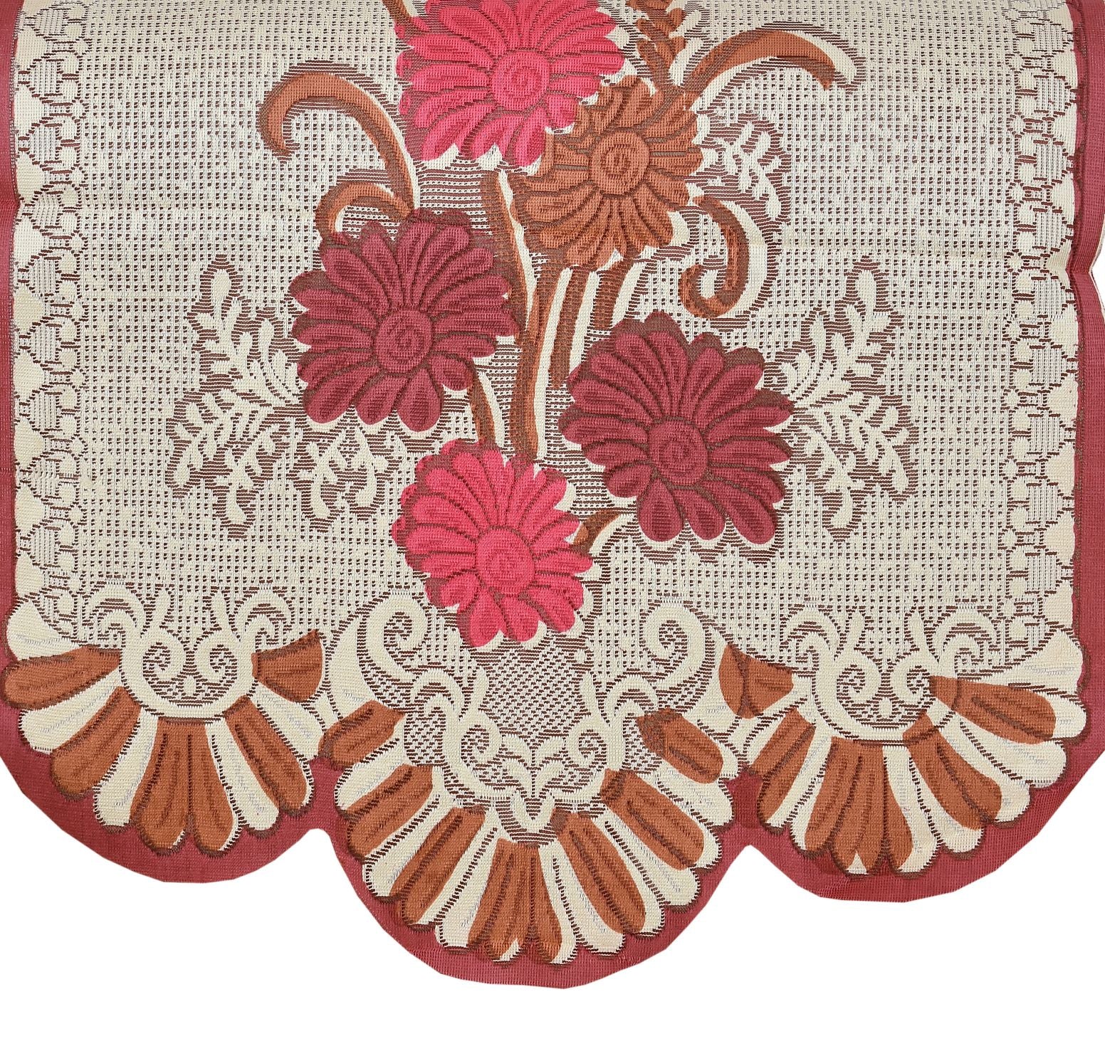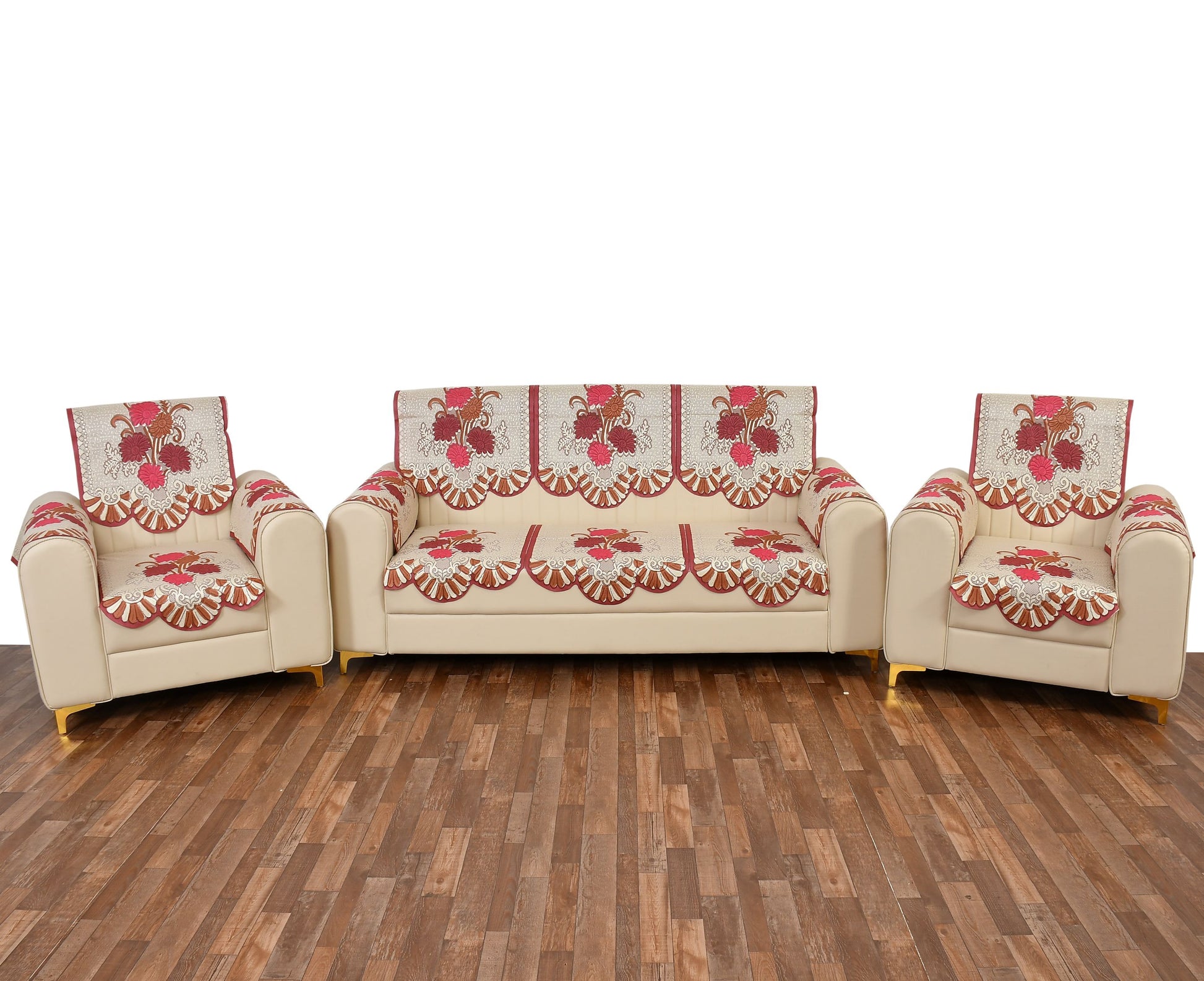 Bigger Fish Poly Cotton Net Fabric Floral Design 5 Seater Sofa Cover with 6 Pcs Arms Cover - 16 Pieces (Maroon)